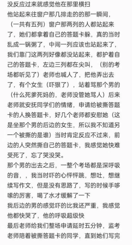 网传山东济宁邹城一中高考考场考生现场崩溃撕卷子