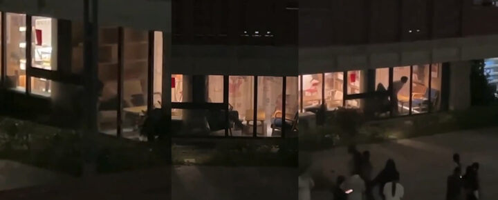 这难道就是传说中的课外小课堂?江苏师范大学科文学院教学楼阳台上,一对在校生情侣竟然在上课期间跑到这里激情野战做i,恰巧就被路过的校友目睹了全程。
