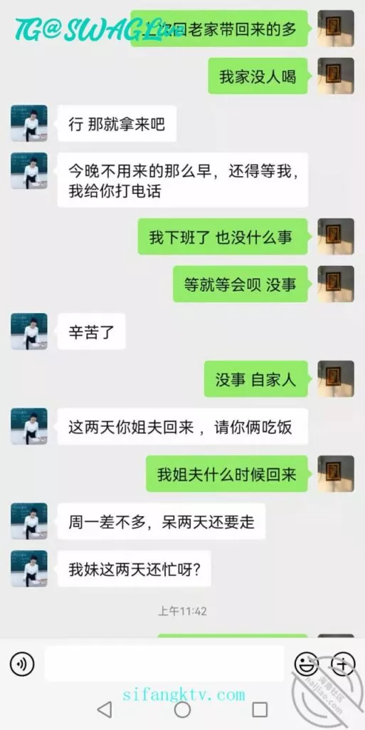 聊天记录头像让我截掉了没办法隐私重要明天周六了大姨子说她颈椎病犯了(教师的通病吧)我打算明天给她买些礼物去看看她正巧她也放假了而且重要的事我姐夫不在家有机会呀!