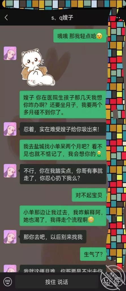 这期间因为疫情加上她家里的事情太多我就没去找嫂子,第一避嫌,第二想让嫂子冷静一下没必要闹的这么僵,两个孩子的爸爸是事实,谁错了认错,两个孩子是无辜的,他们还小,别让他们成为单亲家庭,真的会有伤害。