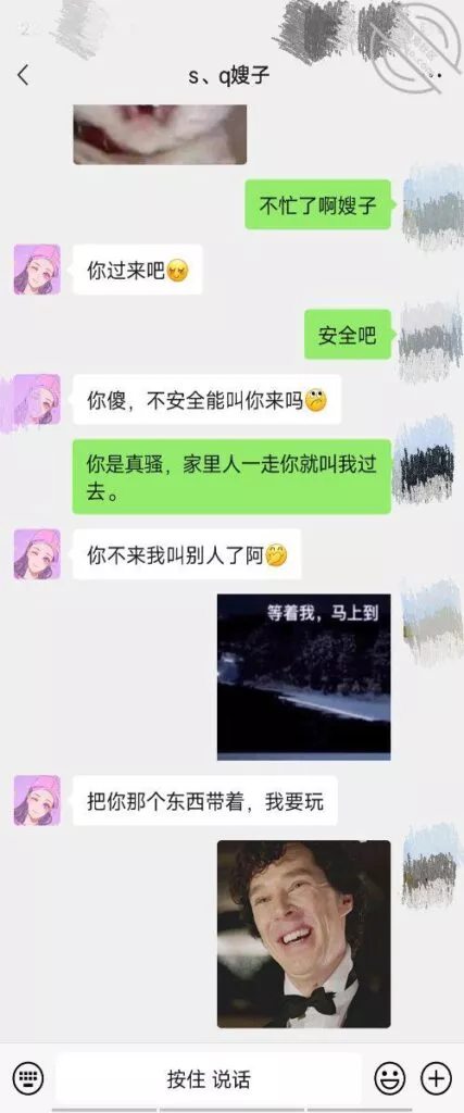 嫂子说想过,觉得很恶心,可能因为和陌生人没感觉,我说那假如哥哥同意我俩一起Cao你,你觉得咋样,嫂子说那可太刺激了,不可能成为现实,我说找个单男干净的,几把大点的,出健康证明这样的行不,我俩干你,或者找两个单男我们三个Cao你行吗?