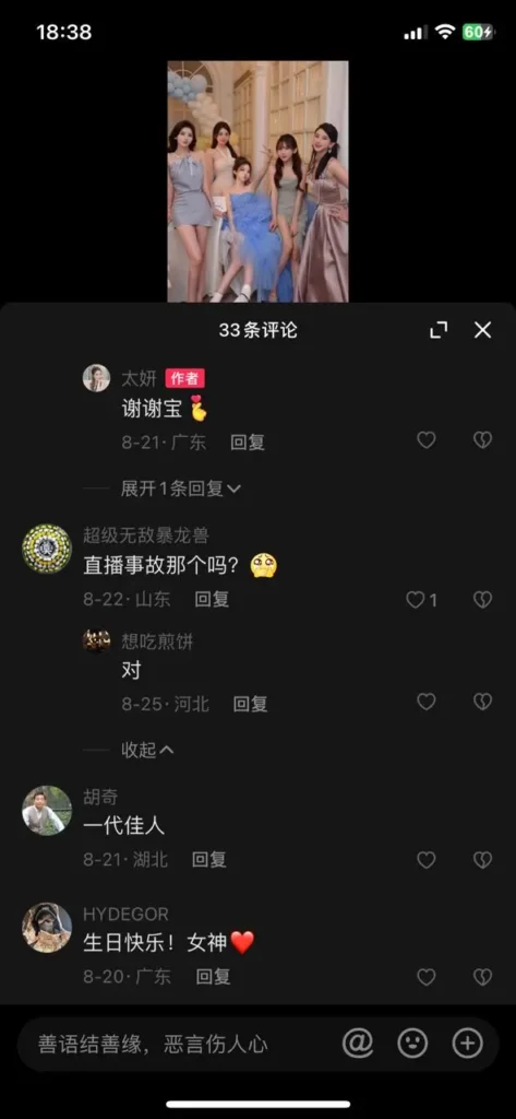 抖音 太妍 直播事故 意外露G扔