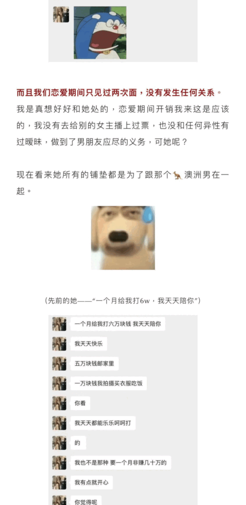 76万粉丝的经典捞女月月大小姐估计瓜友有不少都关注了吧,直播间也看的不少,本以为是一位清纯且励志的女主播,没想到今日一看,匪夷所思,外表光鲜的背地里其实烂病缠身,与苦主谈恋爱时还多次出轨前任,还是多位前任,甚至还问苦主要钱开房,真的看的瓜姐都吓呆了,这么不要脸的女生真的有一次看见。