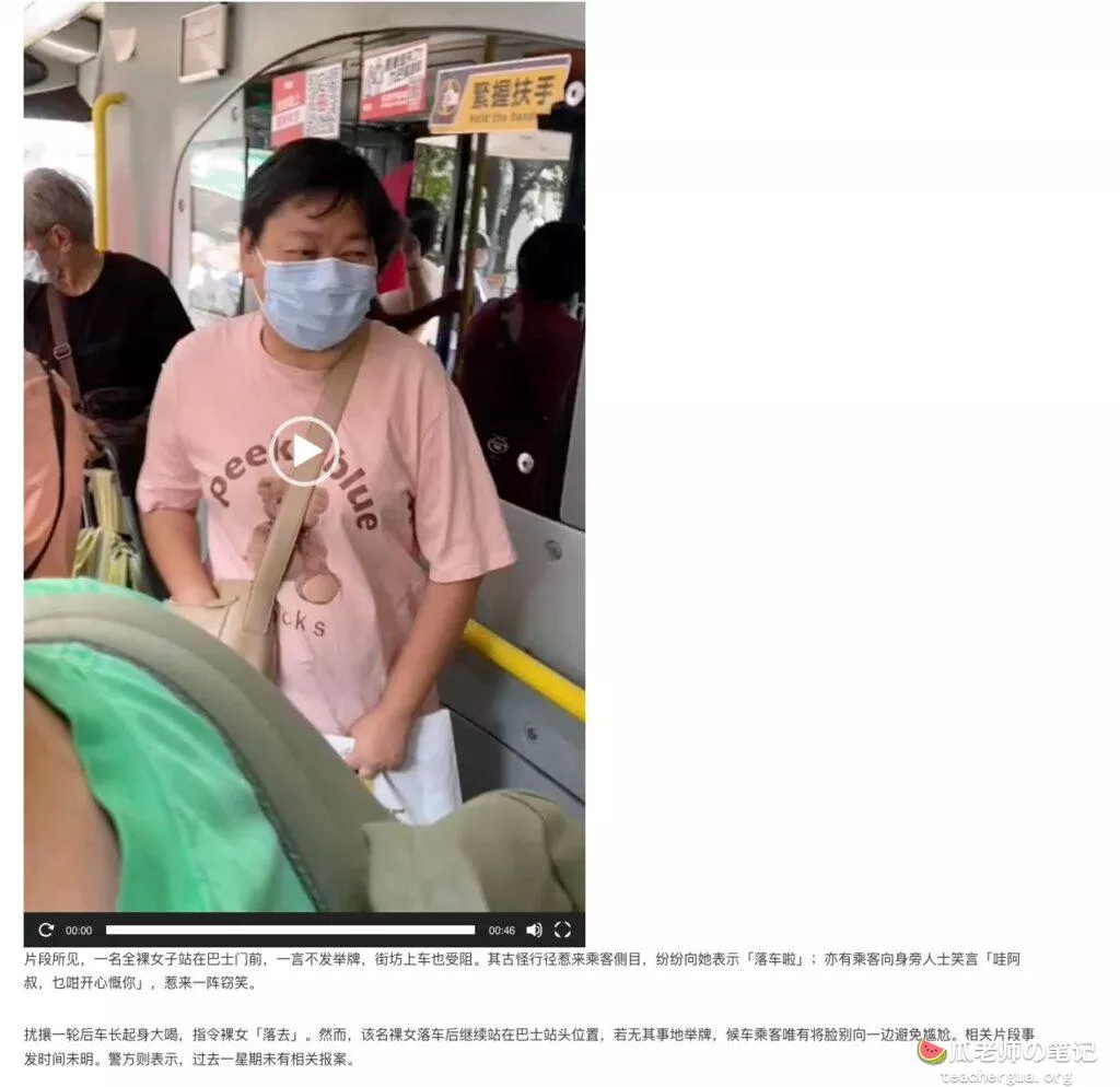 10月19日香港秀茂坪顺天村巴士总站,竟然有一名果女无视众人目光,