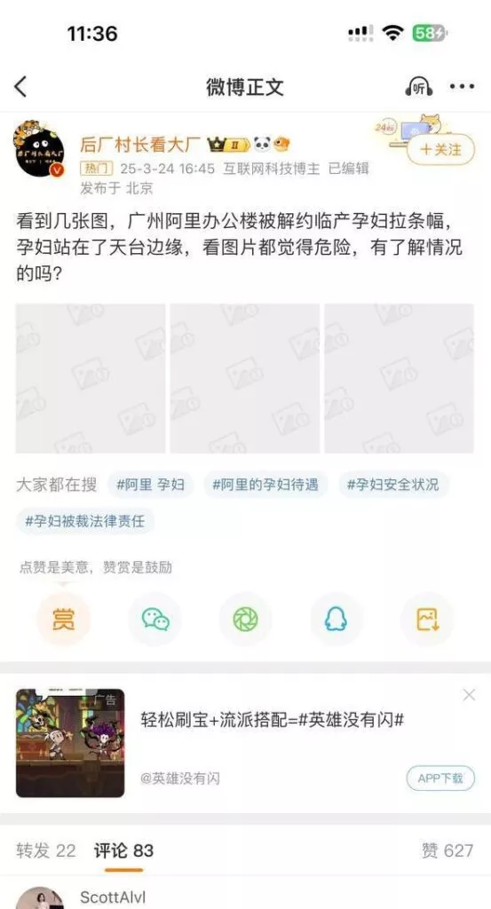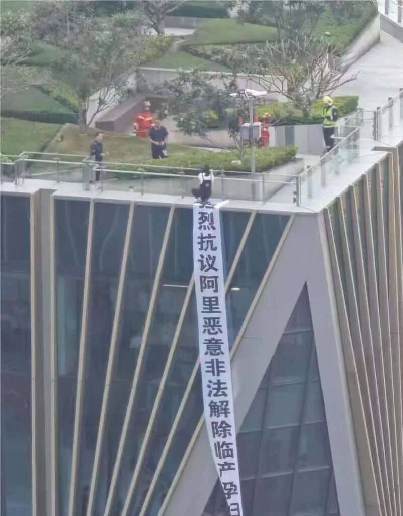 广州阿里巴巴曝丑闻临产孕妇被强制开出顶楼拉横幅维权