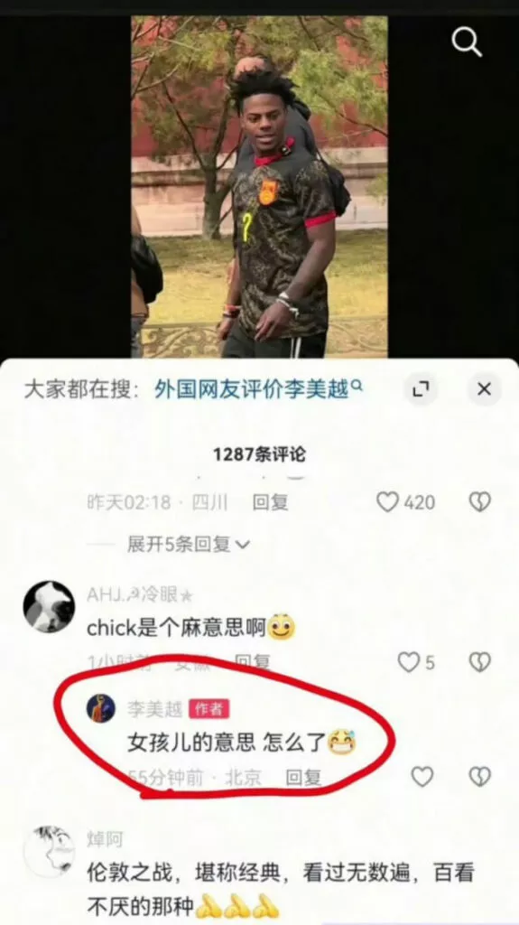 妥妥的吃尽短视频红利,但此人极度表里不一,在美国油管顶级网红甲亢哥来华旅游途中,当着直播的面要为甲亢哥介绍chick(少女),从剑桥词典中查阅到,这个单词但有侮辱性质,等同于对着黑人喊nigger。