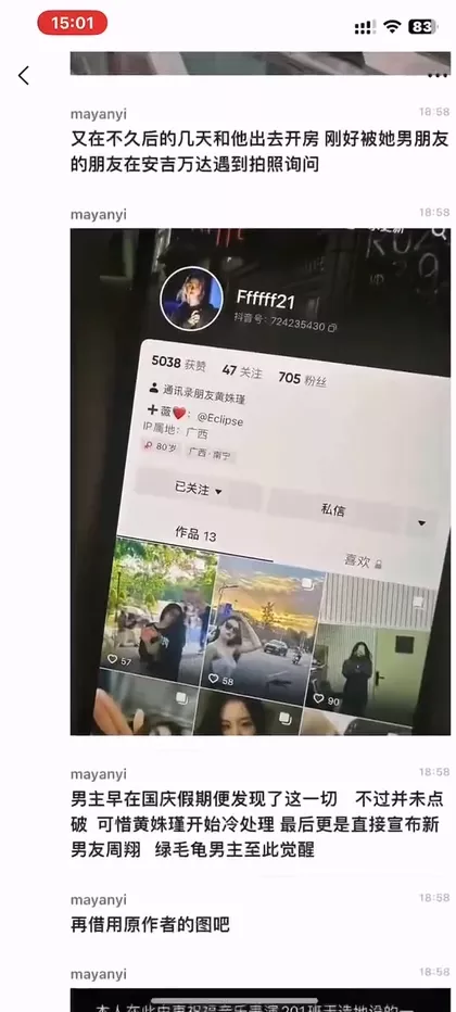 广西大学行健文理学院的黄姝瑾,被称为“究极海后渣女”,在背着自己的男友的同时,竟然与三名男子保持不正当关系。她似乎特别偏爱绿色,可能是因为这让她乐于为男友带上“绿帽”。远在异地的男友,经过一番努力终于来到她身边,却意外发现了她手机中的秘密,自己无缘无故地戴上了三顶“绿帽”。