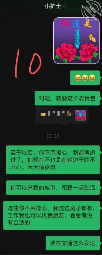 而且平常我点外卖的时候,还会给她点一份,因为外卖不给送上楼,只能让小护士下去拿,一开始的时候我就点了3份,一份给她一份给她一起来查房的那个小护士的。