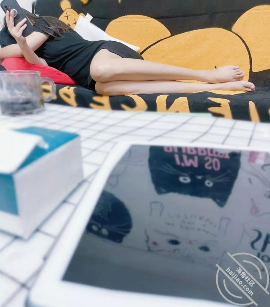 没敢有什么动作,因为很快就买饭回来了。吃完饭小姨子躺在沙发上玩手机