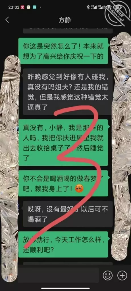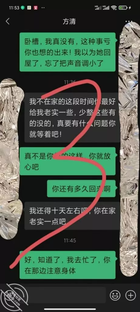 因为平常我也没有看对方手机的习惯,还真是疏忽了这一点,看到这情况我真是气不打一处来,感觉肯定有事,把老婆喊进大卧室里,很生气的质问了一番,老婆说只是同事关系,不是我想的那样,密码也告诉了我,虽然听老婆这么说,稍微吵了几句,老婆有点生气,我也没敢当面去查手机。但是我还是怀疑这里面有事,大晚上的问睡了吗?还发爱心,是同事,当我好忽悠呢。既然这样……你做初一,别怪我做十五。话说回来怀疑归怀疑,主要是我又没办法去抓现行,心里感觉好乱,好烦。我该怎么办?