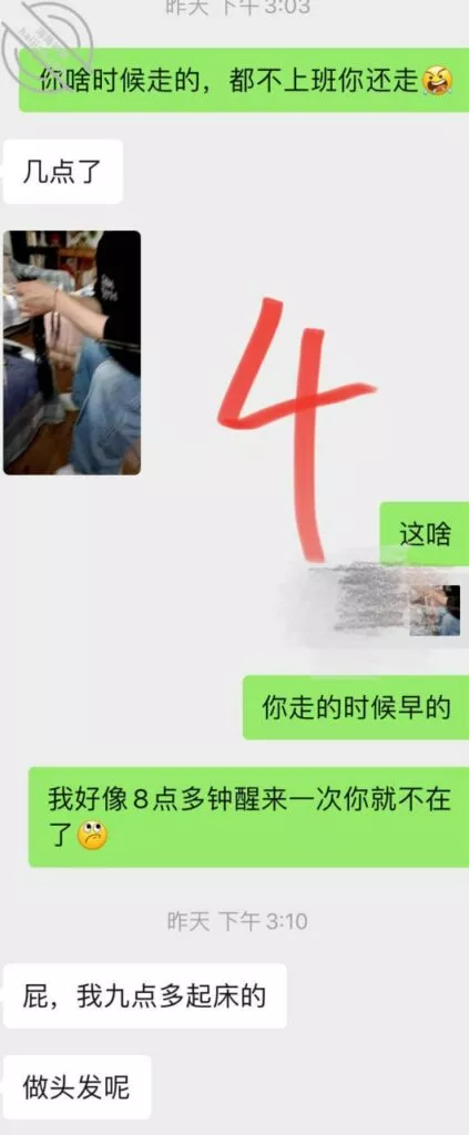 话说自打受伤以来,天天不能洗脸不能洗头,感觉都快臭了,小少妇主动说要帮我洗头;我们家里没有盆,因为平时我也用不到,她回自己家取了一个,不过……这个盆我怎么看怎么觉得不对劲呢,这么像她洗B的盆呢,居然拿来给我洗头,我问她他坚决反对,她说洗屁股的你这个还小,不过这个体验还是很好,她自己说这是第一次给男人洗头,第一次这么伺候一个男人,这还真的是爱上我了;聊天记录里提到的饼,晚上做了两个菜卷饼吃,话说抓住一个女人的胃,同样可以抓住她的心啊,哈哈,每天已经习惯性的,下班了会来我这里吃饭,彻底离不开了,昨天回家说做头发,话说现在的理发店服务都这么好了么?还可以上门服务?她自己说来的是个小哥哥,我还跟他开玩笑,那就只做头发了吗?没做点别的么然后………被她骂了几句;不过也真的是,人家都上门了,也不知道把握机会让人Cao一下录个视频啥的给我看,做完第一时间就跑过来问我好不好看,那我肯定是说好看啊,但是说实话啊兄弟们,我觉得女人好多钱都是白花的,因为我压根没看出根以前意思哈区别,他说以前的带卷,波浪的,现在是直的,我看了以前照片才看出来,昨天发的视频,你们看出来区别了吗,昨天晚上搞了个录音,我发现啊,我只要不录像,她真的是放的要比我录像的时候开得多,我没发过录音,研究一下怎么搞,一会给大家分享;