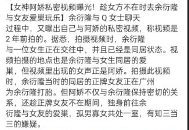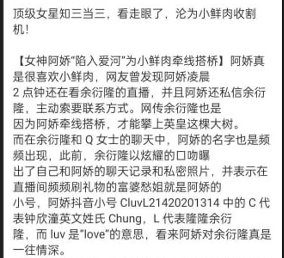 香港著名女星挨浇知三当三插足24岁小鲜肉余衍隆恋情被曝聊天记录