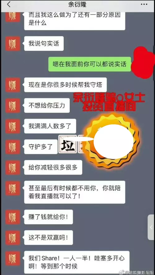 事件曝出后,有关于这位小鲜肉余衍隆的被曝光,从这些网传记录来看,这位小鲜肉似乎特别喜欢富婆,,,,,,的钱,对于钟情于自己的富婆粉丝,钱是张口就要,不给就骂,性格相当恶劣,且看记录