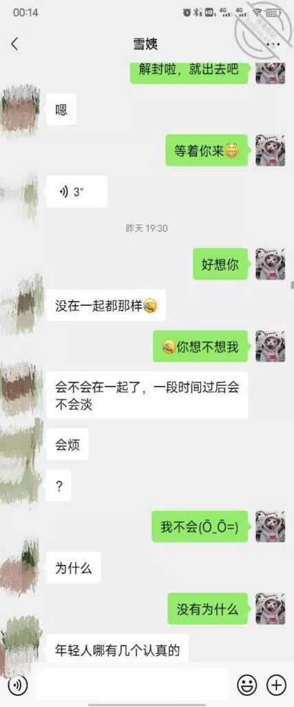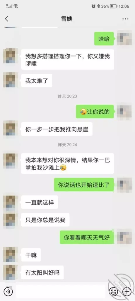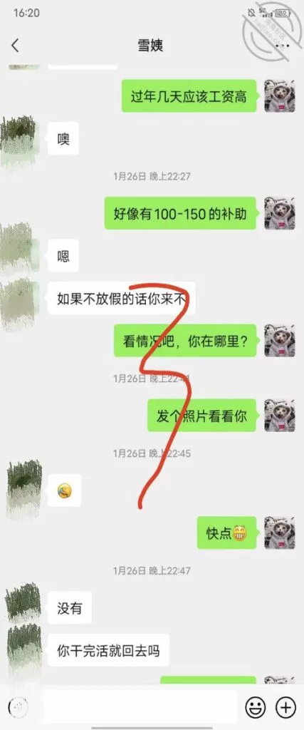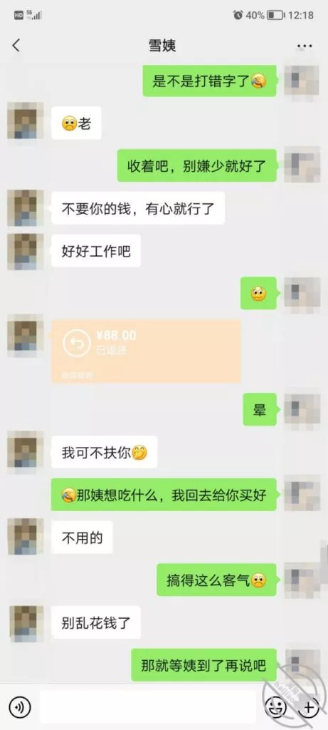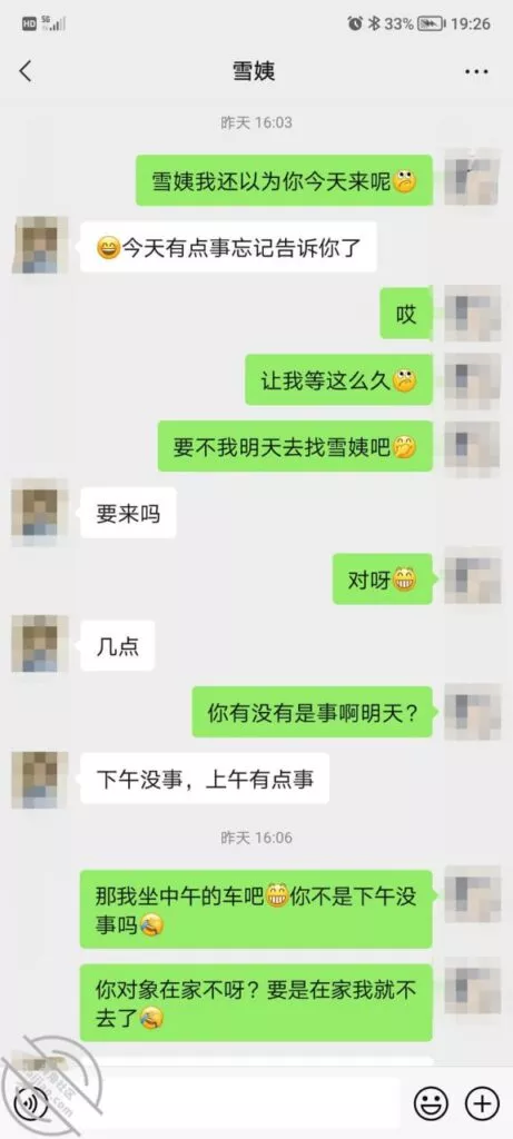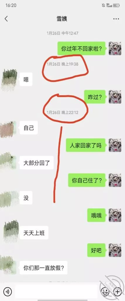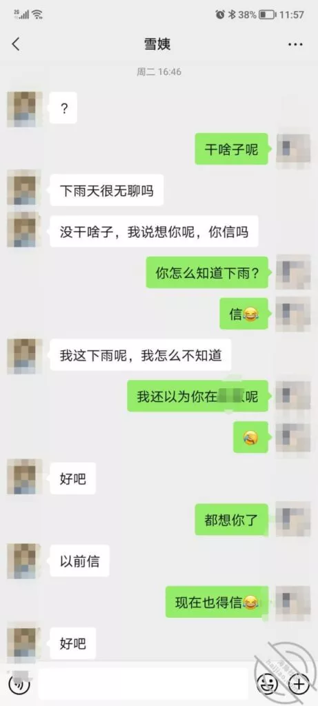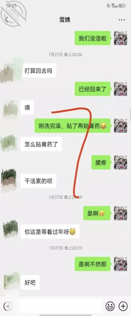 这是快过年的时候跟雪姨聊天的一部分聊天记录
