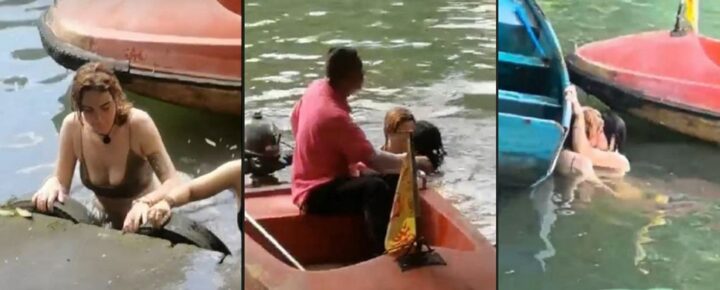 广东广州市越秀公园越秀湖外国妹下水上演百合大戏看呆了大爷