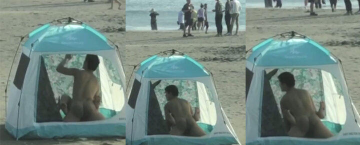 就是不听劝?年轻情侣海边支个帐篷就做i门帘不拉就直播