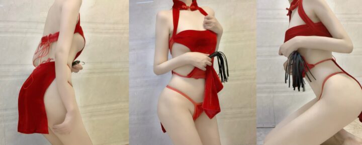 “神秘红色丝绒装美女:相扑猫的魅力与性感之旅”(共16张图片)