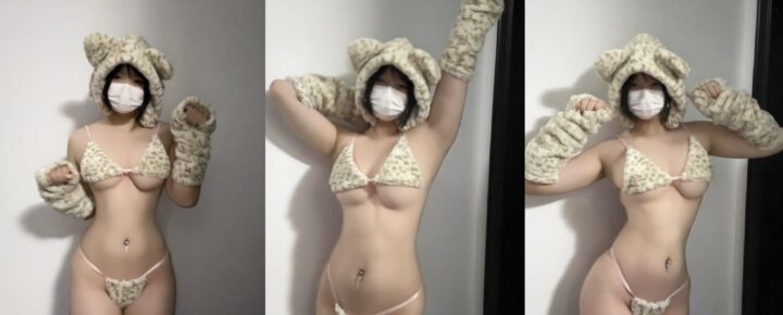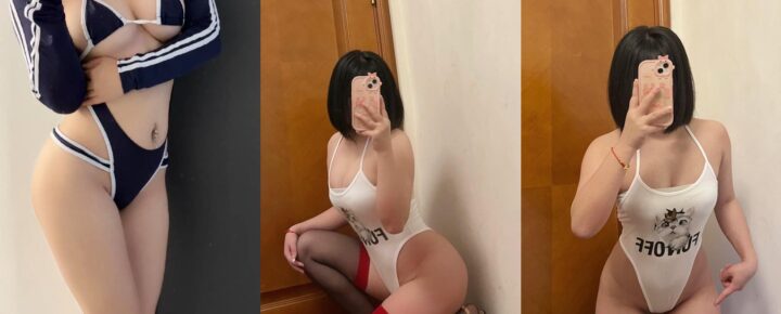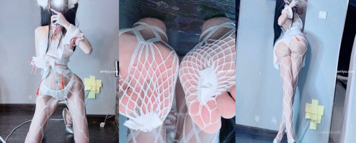 抖音网红 小蕉 性感泳装写真:独特设计白色猫咪图案泳衣(共9张图片)