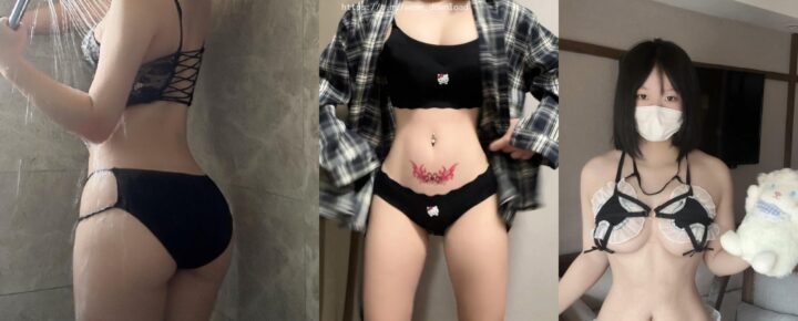 抖音网红小蕉时尚泳装黑色内衣全景照及视频展示(共23张图片)